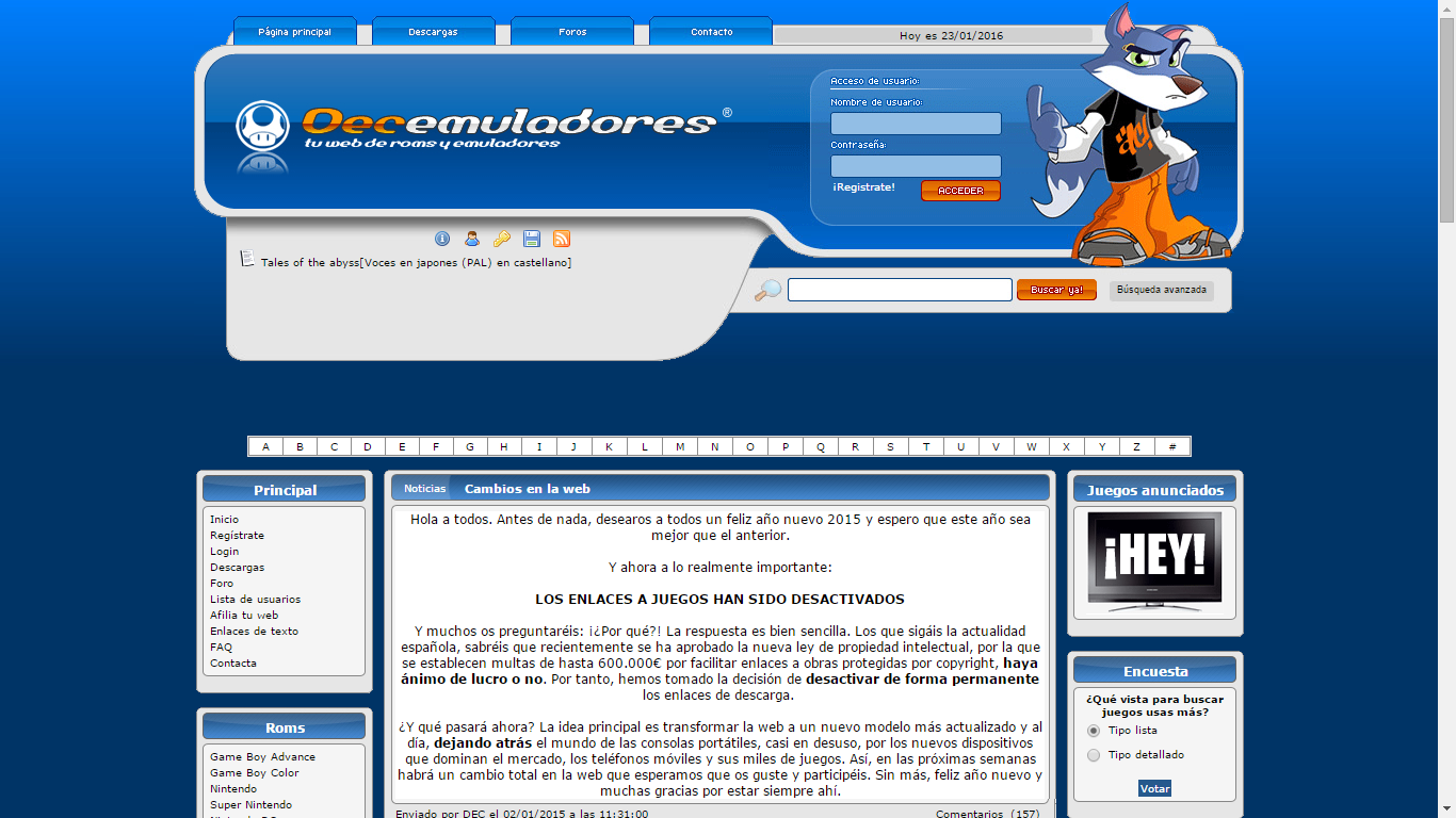 EN ENERO DEL AÑO 2015 DECEMULADORES ANUNCIO SU CAIDA PERO AHORA VUELVE EN FORMATO 2.0 CON JUEGOS PARA TODAS LAS PLATAFORMAS EXISTENTES, UN NUEVO DISEÑO Y NOTICIAS DEL MUNDO DE VIDEOJUEGOS